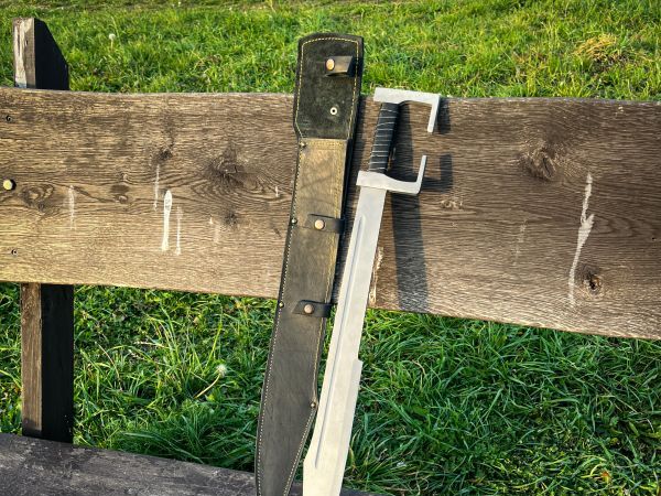 Длинный одноручник с характерной гардой, препятствующей выпадению из руки при любых замахах. Клинок расширяется к концу и имеет сложную форму, напоминающую наконечник копья. Рукоять меча обмотана кожей. Вместе с мечом в комплекте идут кожаные ножны-чехол для ношения на поясе.