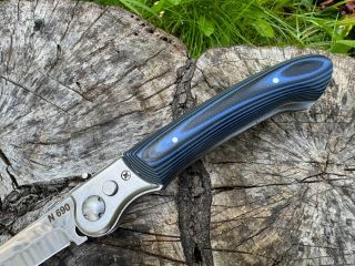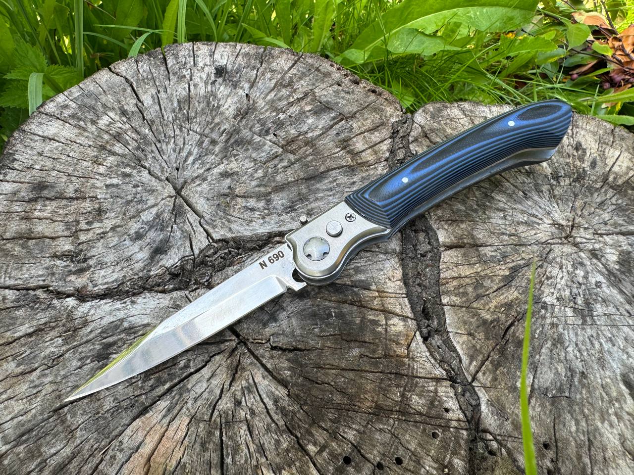 Сталь клинка - Кованая N690Тип замка - Liner LockМатериал рукояти - Карельская березаОбщая длина - 225 ммДлина клинка - 100 ммДлина рукояти - 125 ммШирина клинка - 20 ммТвердость клинка - 61 HRC