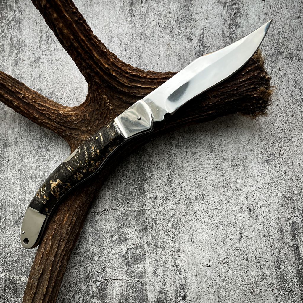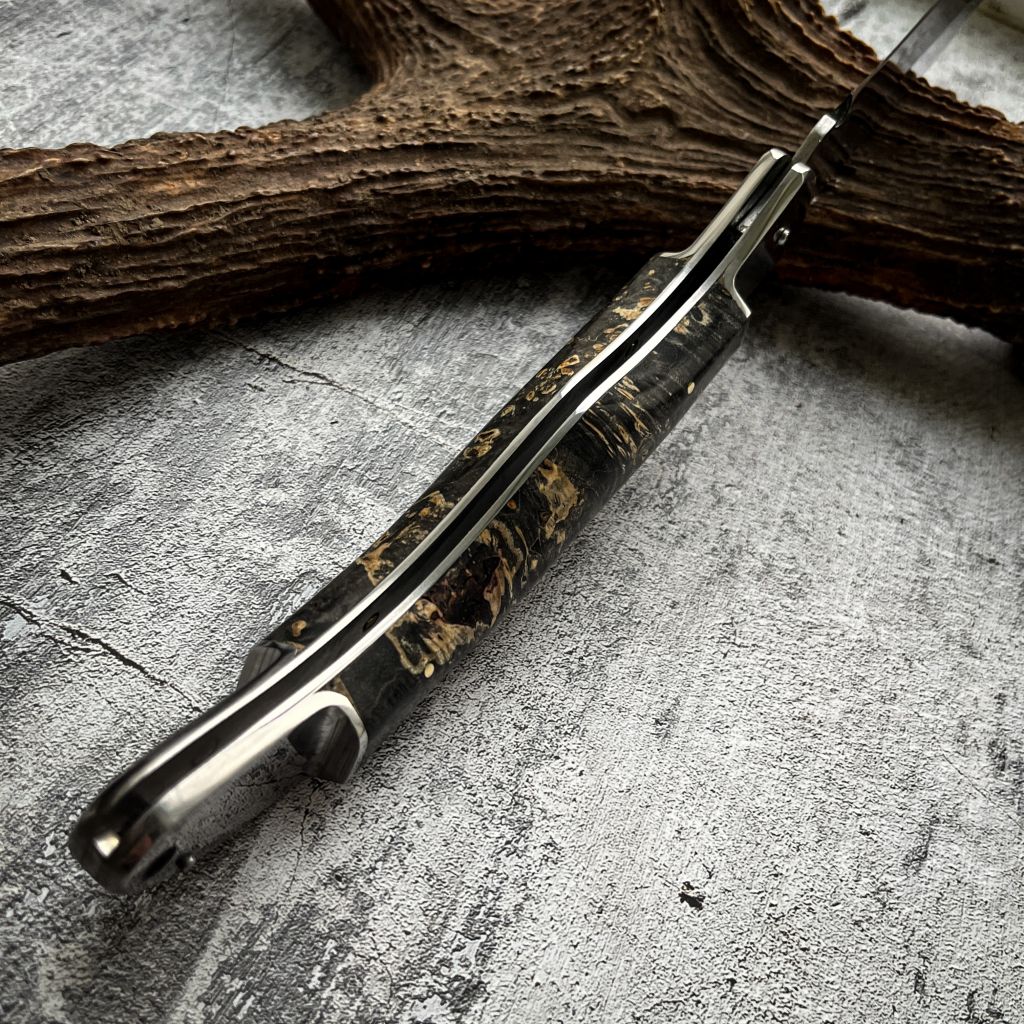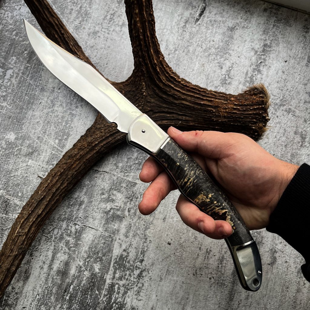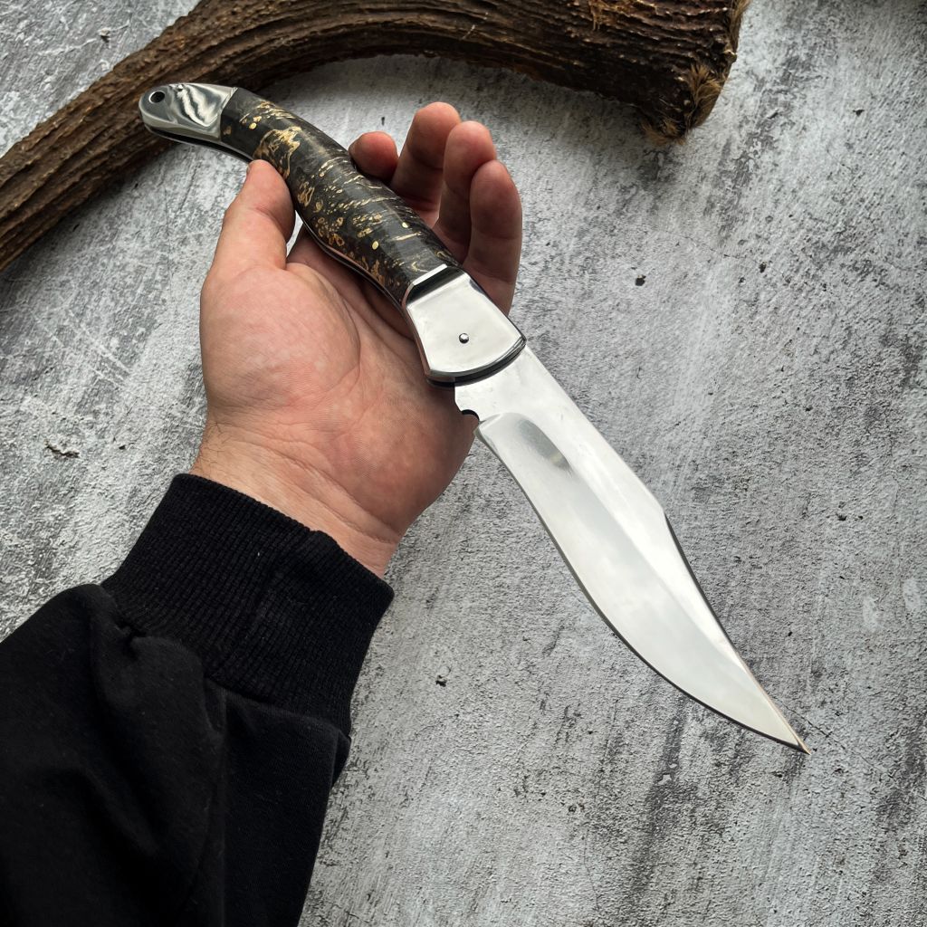 Сталь клинка - кованая 95х18Тип замка - Liner LockМатериал рукояти - ВенгеОбщая длина - 225 ммДлина клинка - 100 ммДлина рукояти - 125 ммШирина клинка - 25 ммТвердость клинка - 58 HRC