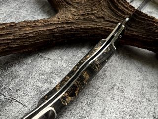 Сталь клинка - N690 кованаяМатериал рукояти - G10 чёрно-синяяОбщая длина - 220 ммДлина клинка - 100 ммДлина рукояти - 120 ммШирина клинка - 20 ммТвердость клинка - 61 HRC