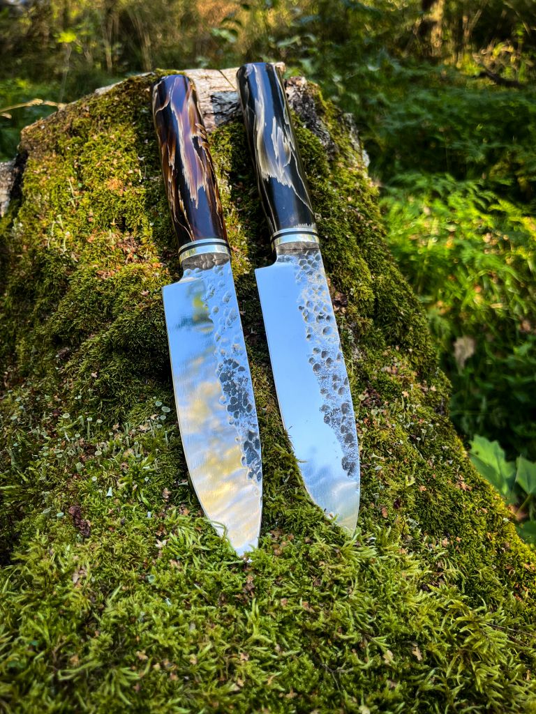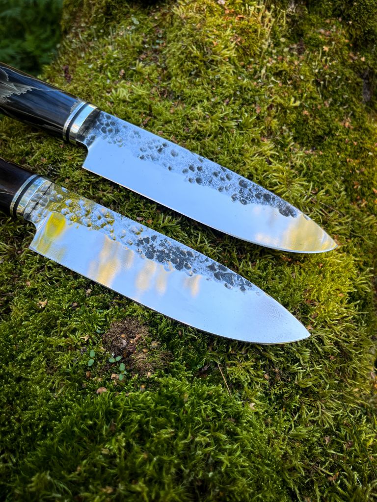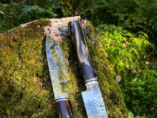 •Сталь VG10 (твердость 62 ед, не требуют ухода, элементы ковки, спуски вогнутая линза, сведение в 0,2