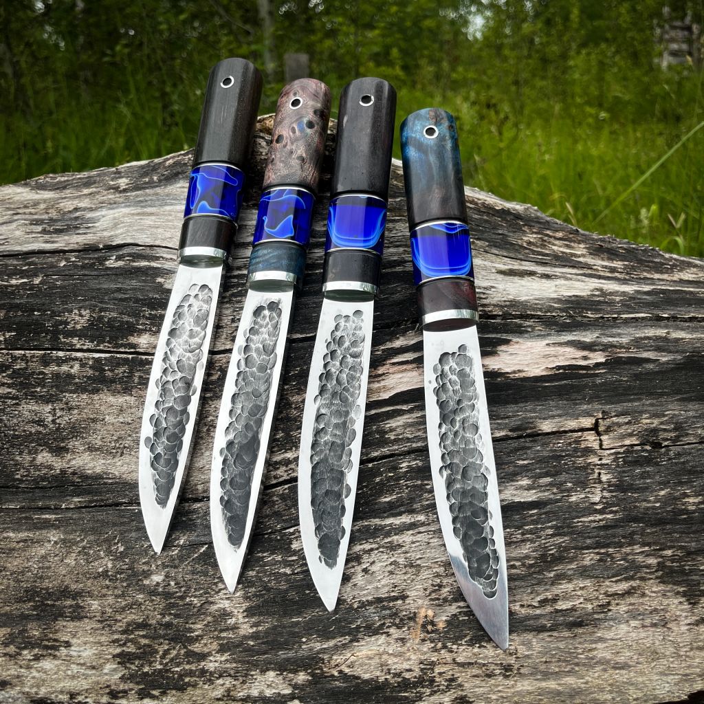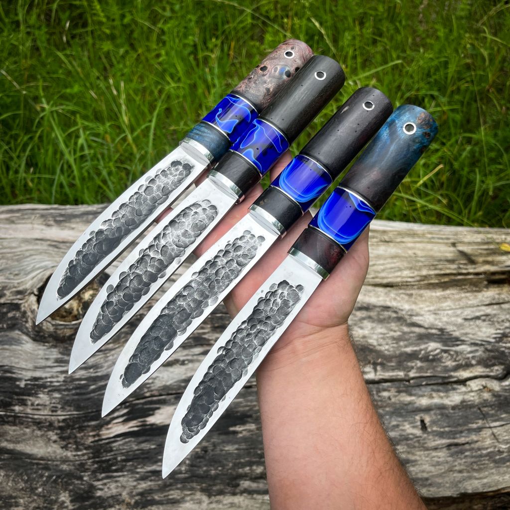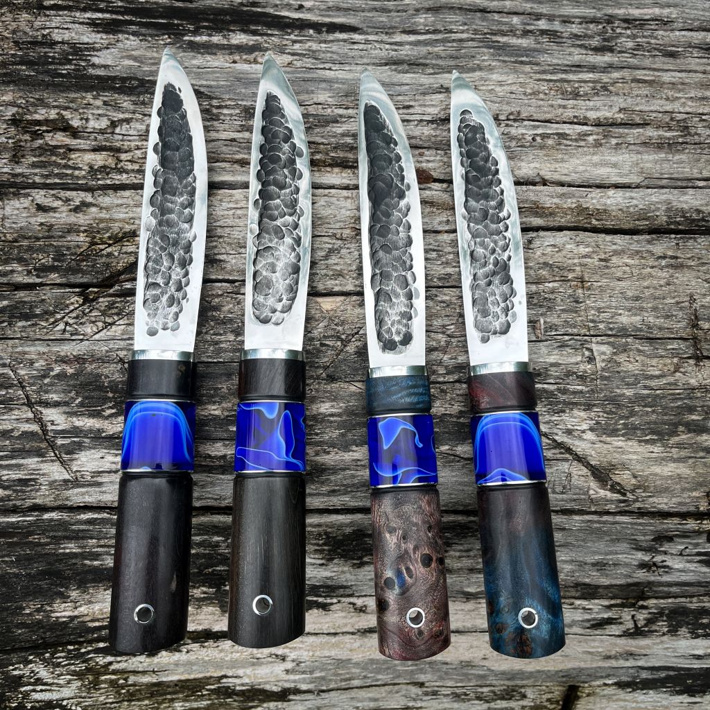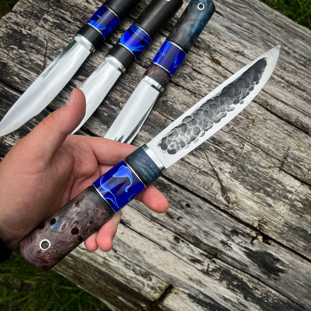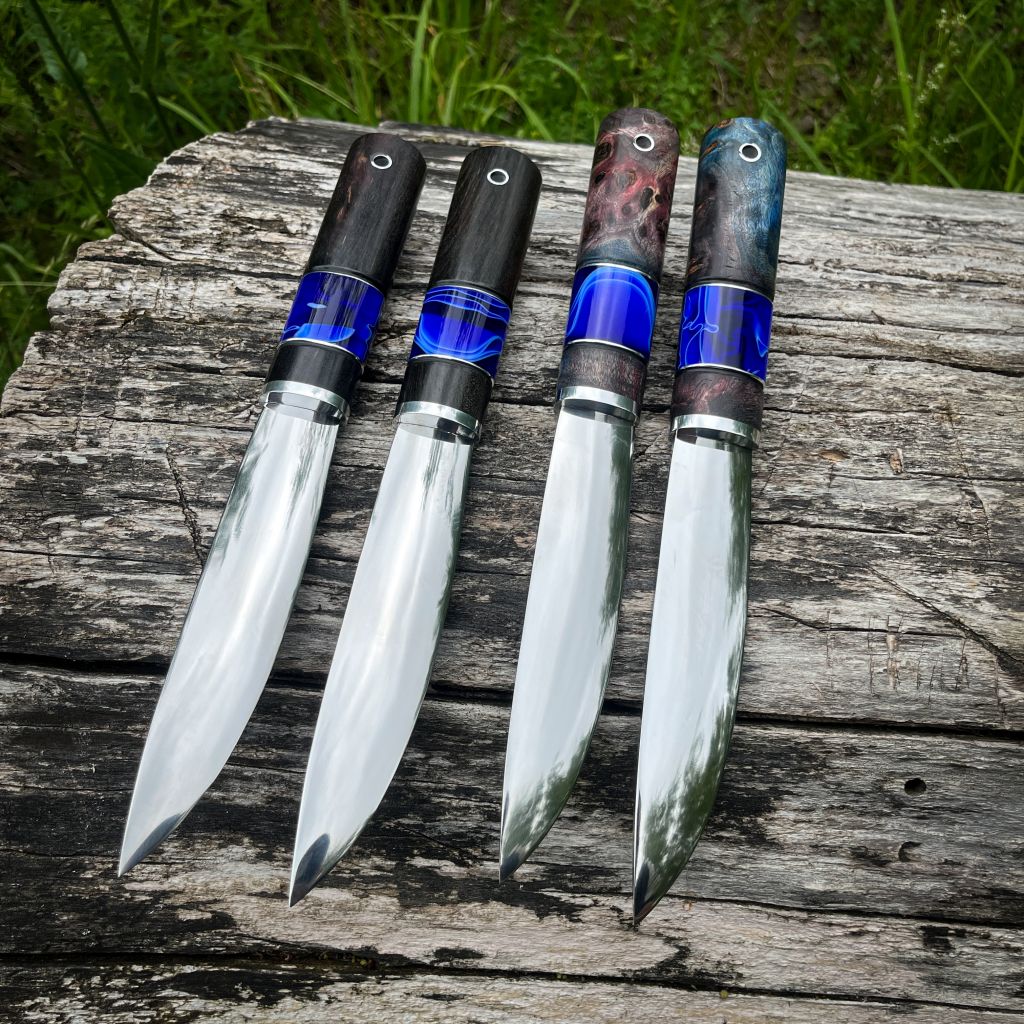 •Сталь - VG10 в зеркало, твердость 61 ед., кованый дол, спуски выпуклая линза.